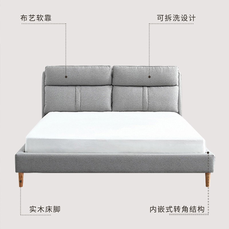 1.飽滿大靠背:舒適實用,兩個單獨靠背,全面放松身體。 2.可拆洗設(shè)計:床屏靠背處設(shè)拉鏈或魔術(shù)貼,開合順暢。 3.內(nèi)嵌式轉(zhuǎn)角結(jié)構(gòu):牢固固定床墊,不滑拖,不跑位。 4.橡膠實木床腳:圓潤優(yōu)雅,承重出色。